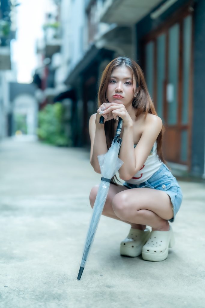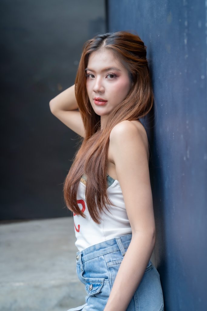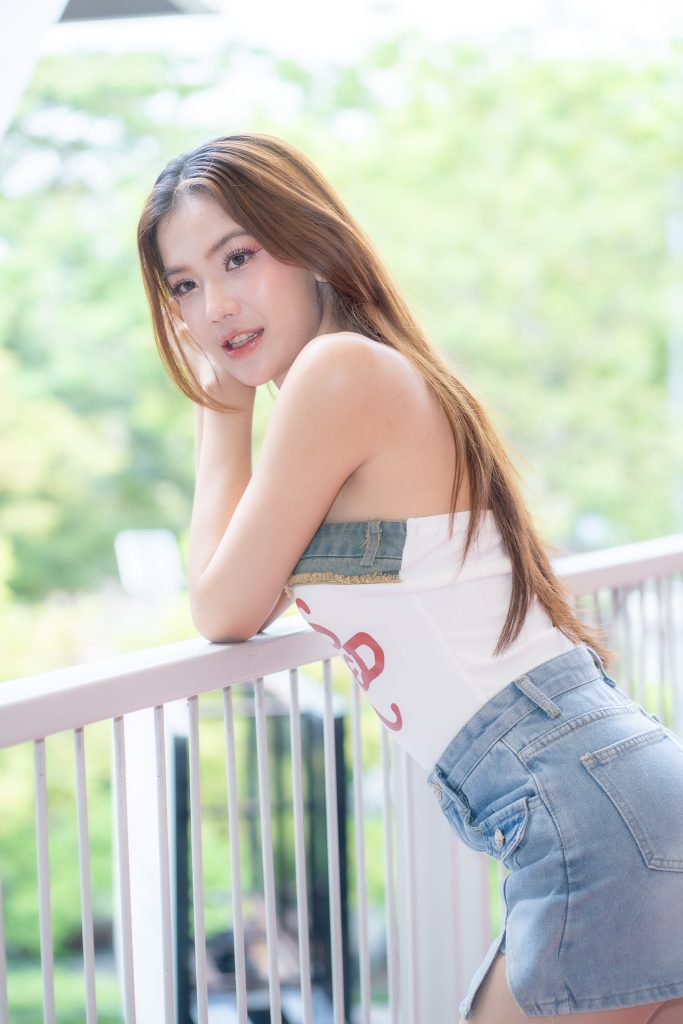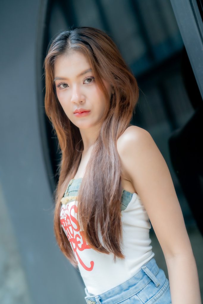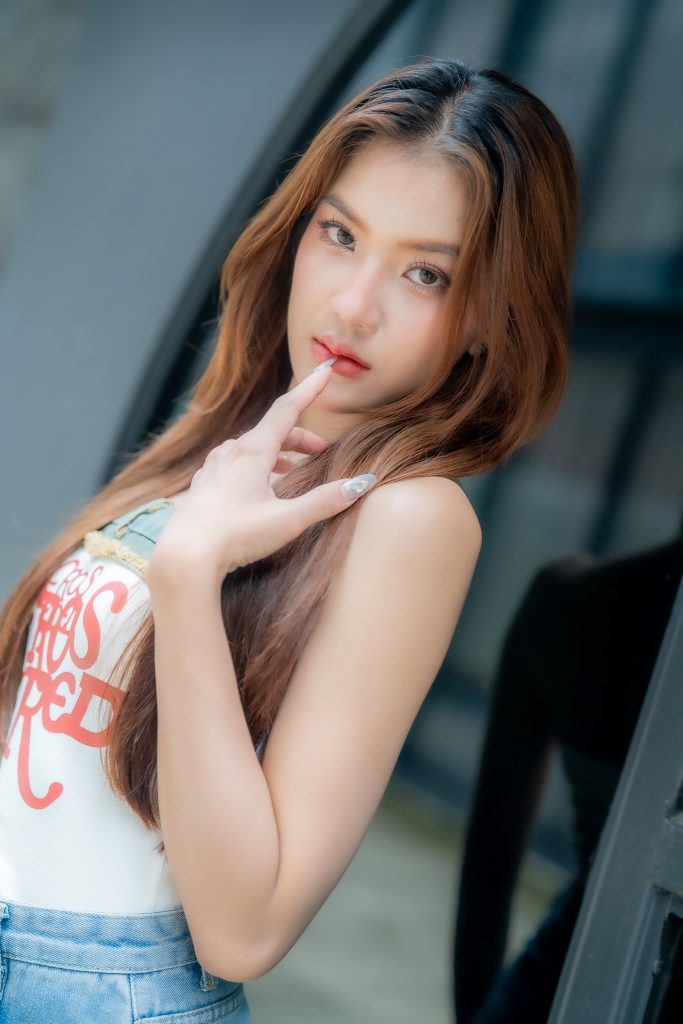 แววตาที่สะท้อนความอ่อนโยนกับรอยยิ้มบางเบา ถ่ายทอดเสน่ห์ของความสดใสอย่างเป็นธรรมชาติ ทุกองค์ประกอบของภาพเปล่งประกายด้วยความน่ารักไร้การปรุงแต่ง แสงนุ่มที่โอบล้อมช่วยเพิ่มบรรยากาศละมุนละไม ให้ความรู้สึกเหมือนหยุดช่วงเวลาที่งดงามไว้ในเฟรมเดียว ความสดชื่นของภาพนี้ไม่ใช่แค่จากสีสันที่เบาสบาย แต่ยังมาจากพลังความเป็นตัว