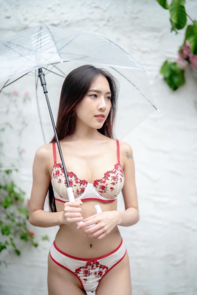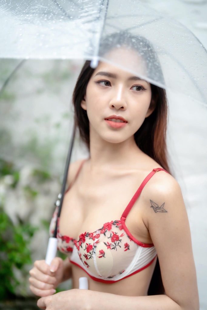 ใบไม้เขียวชอุ่มถูกใช้เป็นองค์ประกอบหลักในการสร้างมิติและบรรยากาศให้กับภาพ ราวกับเป็นม่านธรรมชาติที่เปิดเผยความงดงามที่ซ่อนอยู่เบื้องหลัง แสงธรรมชาติที่ส่องผ่านช่วยขับสีสันและรายละเอียดเล็ก ๆ บนชุดแฟชั่นให้โดดเด่นยิ่งขึ้น ทำให้ภาพนี้ไม่ได้เป็นเพียงการบันทึกบุคคล แต่เป็นการเล่าเรื่องราวระหว่างมนุษย์กับธรรมชาติในเชิงศิลป์ ทุกองค์ประกอบ